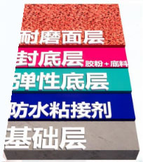 2.复合型跑道找平层:通常用1:5跑道面层喷涂,每平米2公斤,刮涂一遍即可。施工前底层有不平整的地方打磨平整,不要有颗粒翘起。